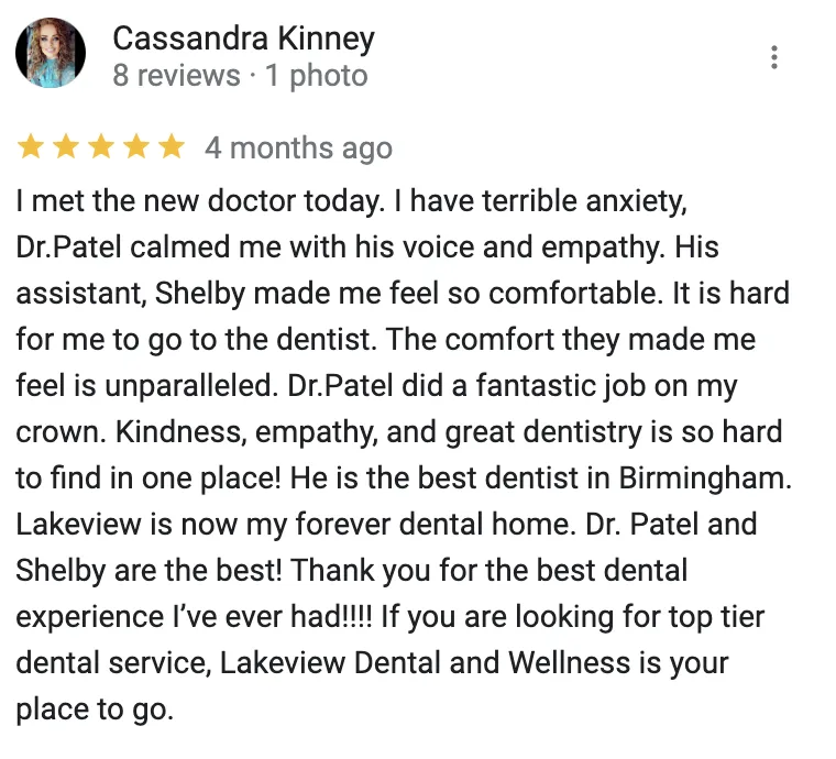 Dr. Patel has always wanted to run his own dental practice, and provide a patient experience that lines up with his personal vision of what dental care should be like. So as the operator of Lakeview Dental & Wellness, Dr. Patel can offer a dental experience that he believes his friends, neighbors, and community members deserve.